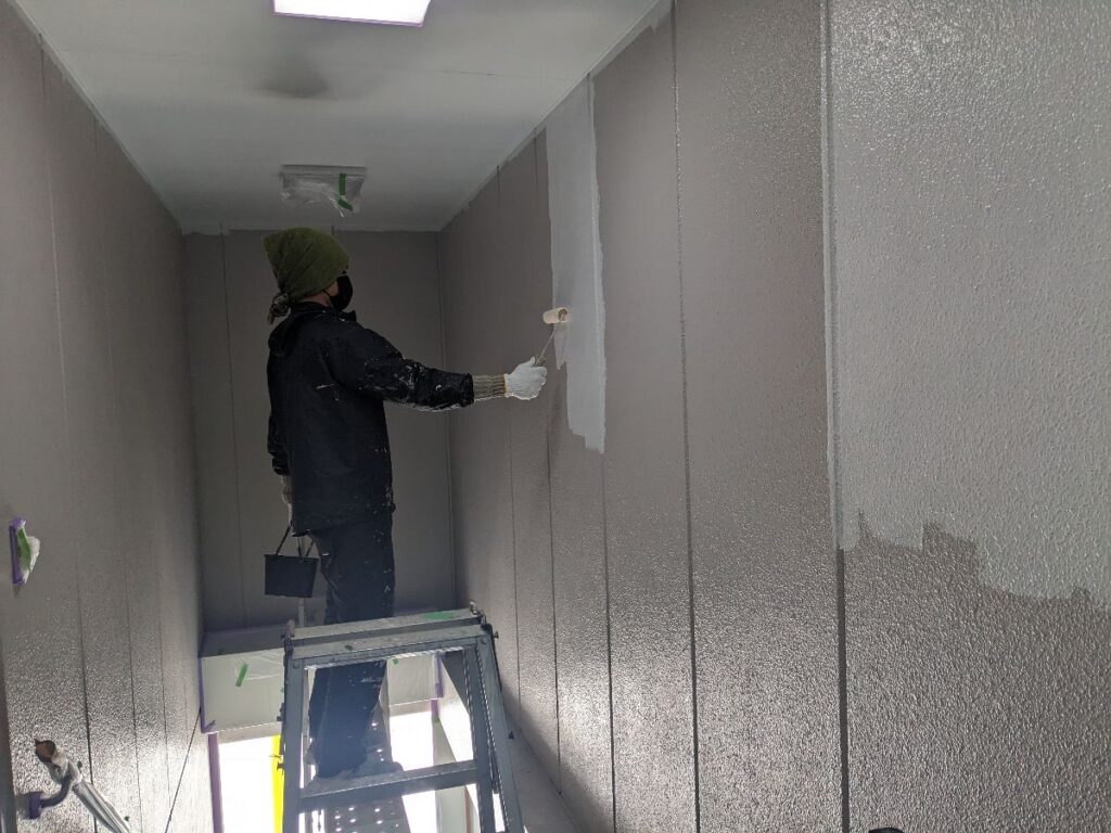 清潔感のある仕上がりになりました。太陽光が当たらない場所ですが電気に照らされて明るい空間に様変わりしました。