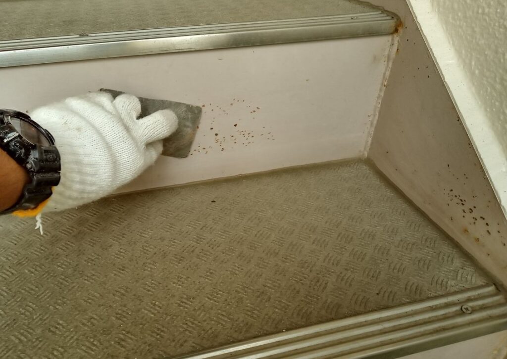 サビつきや長年の汚れや経年劣化が見られる状態でした。階段が汚れていると全体的に暗い印象になってしまいます。