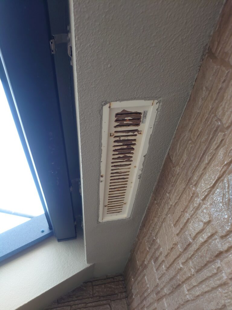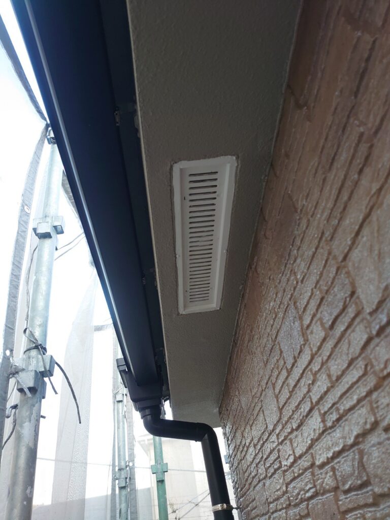 軒天に設置されている換気口(ガラリ)や照明器具まわりなど、普段は見落とされやすい細かな部分についても、ひとつひとつ状態を確認し、周囲との仕上がりを合わせながら丁寧に塗装しています。