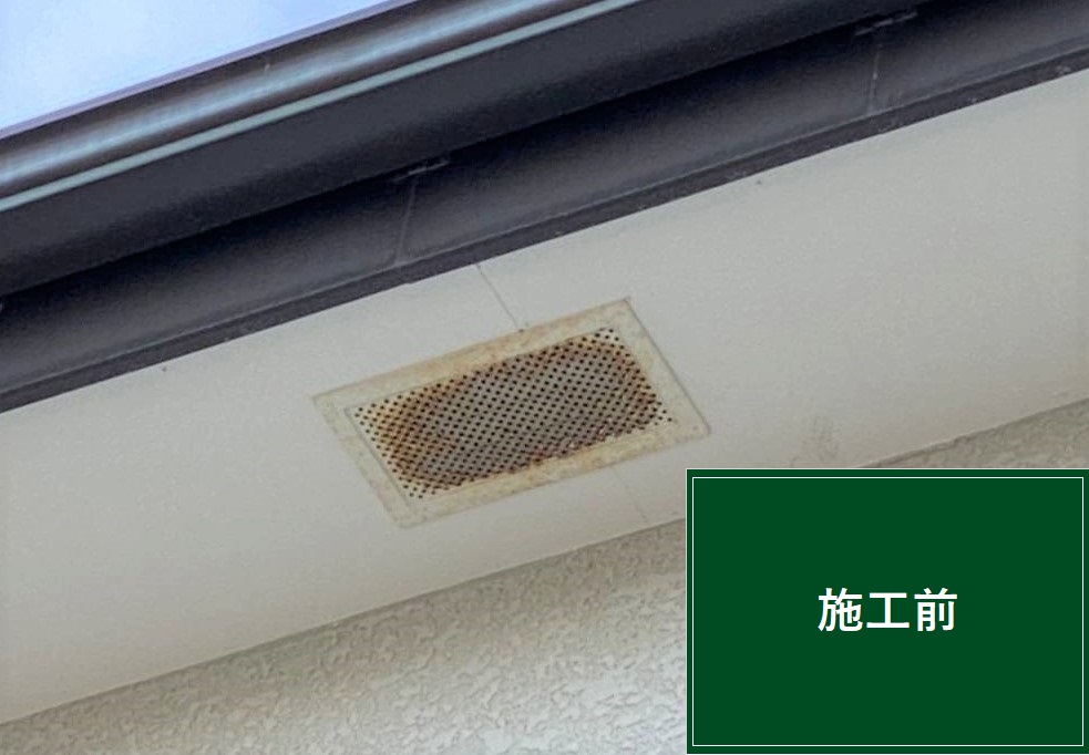 換気口も長年の使用でサビが発生していました。ケレンで汚れを落としてから三度塗りを行います。サビがとれ塗装で白さを取り戻したことで清潔感のある外観になりました。