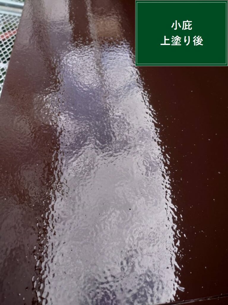 こちらもケレンで表面を整えたあと、下塗り・中塗り・上塗りと三回塗装を重ねます。紫外線や雨水に強い塗料を使用し、耐久性を持たせます。見た目も艶やかになり建物全体の美観も向上しました。