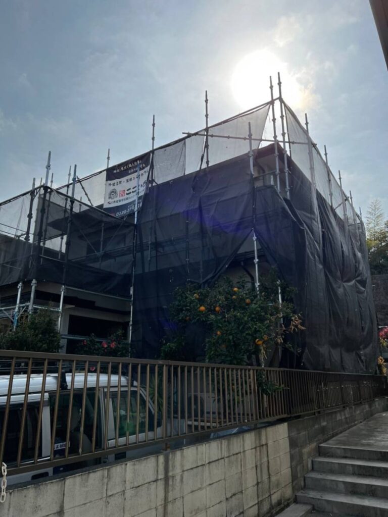 足場設置と高圧洗浄からスタート