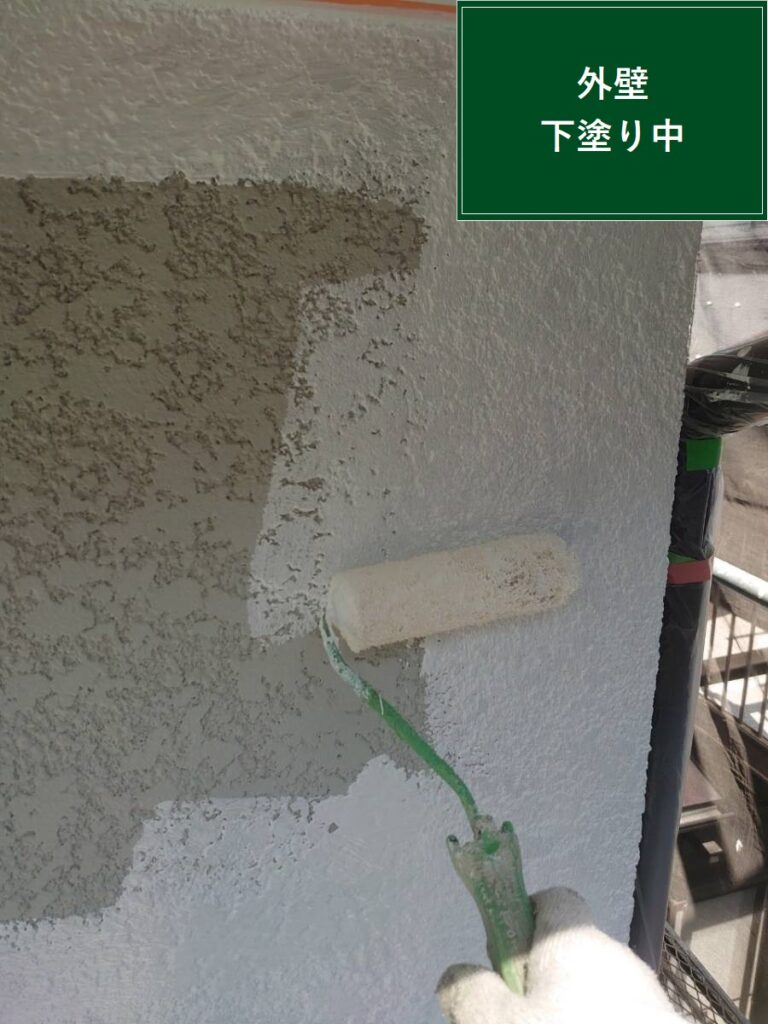 高圧洗浄後、いよいよ塗装に入ります。