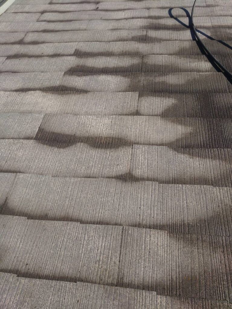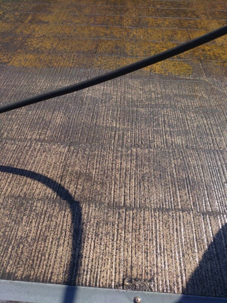 違いは一目瞭然!屋根本来の色が顔を出しました。