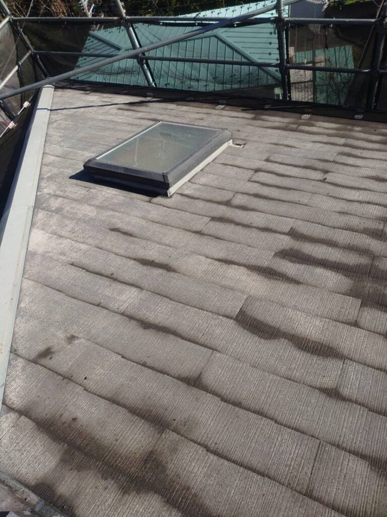 長年の雨風で苔が広がっていた屋根。