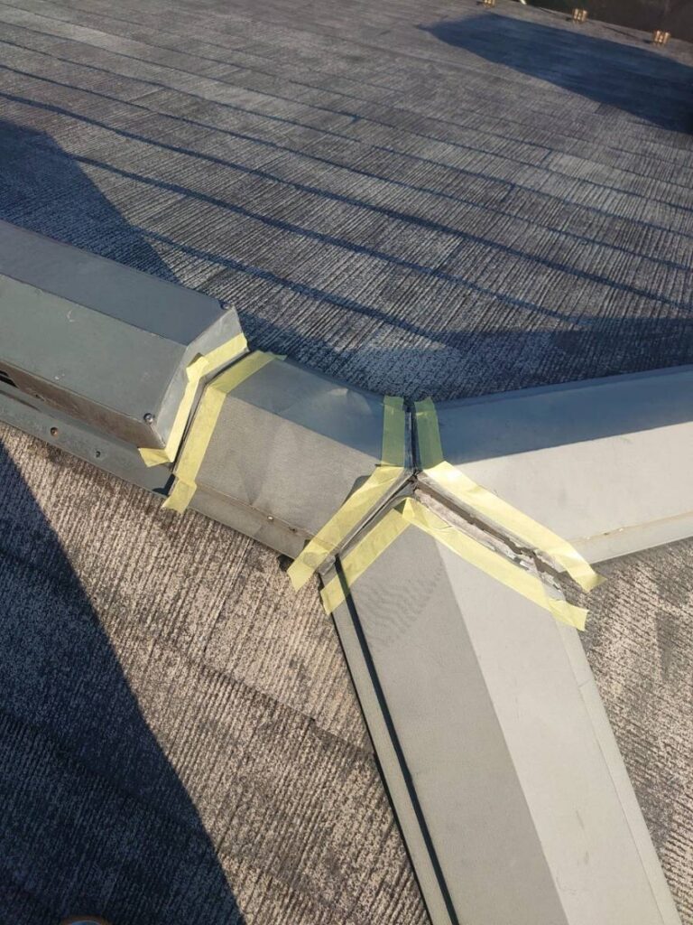 板金の継ぎ目をしっかりと包み、雨風の侵入を防ぎます。