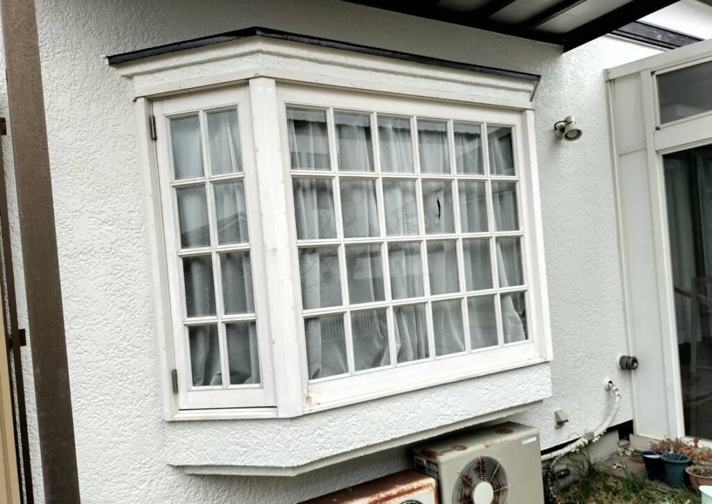 今回ご紹介するのは、経年劣化により色あせや汚れが目立ってきた出窓まわりの塗替え工事です。外壁の中でも出窓部分は雨風の影響を受けやすく、細かな凸凹や付帯部が多い為、丁寧な下地処理と塗装技術が求められます。