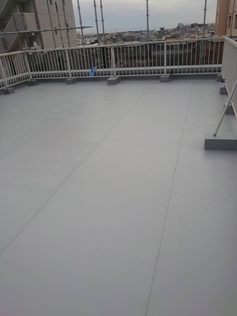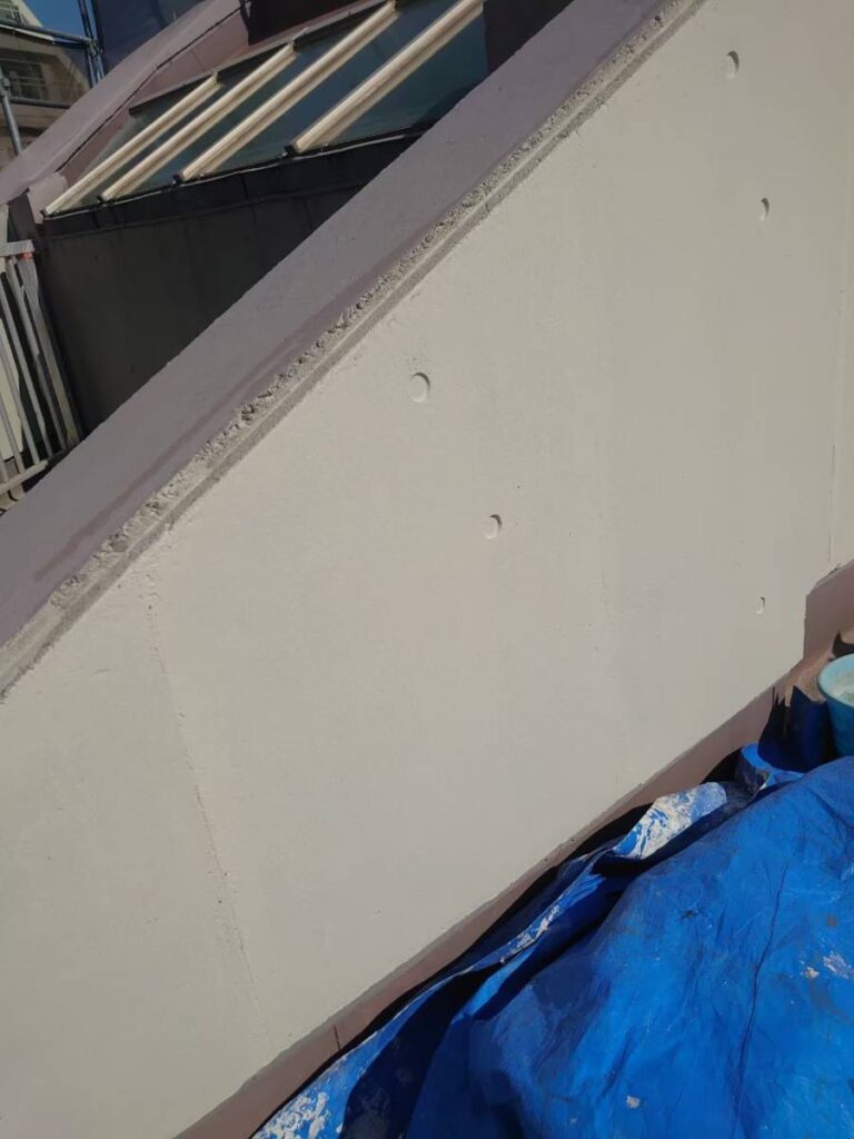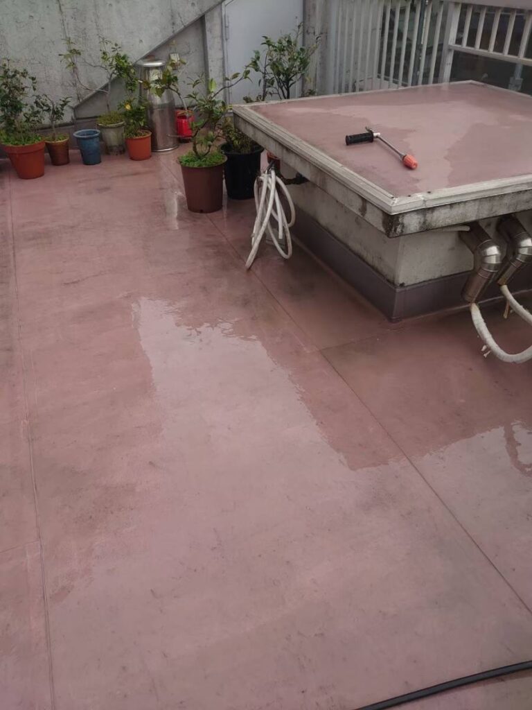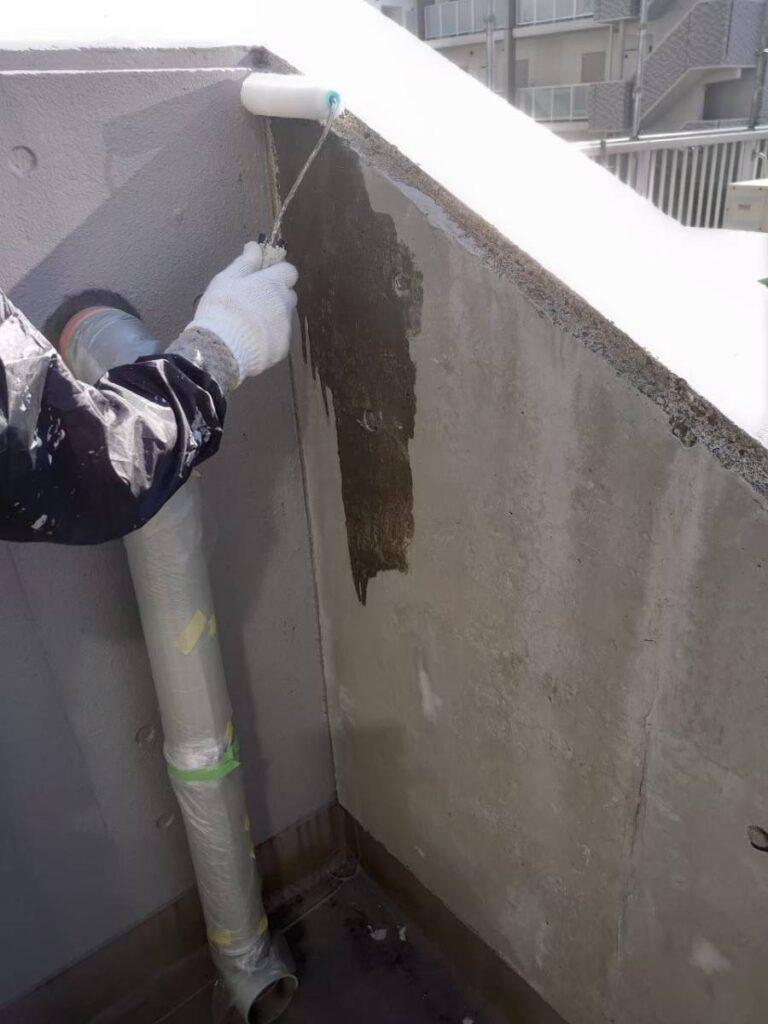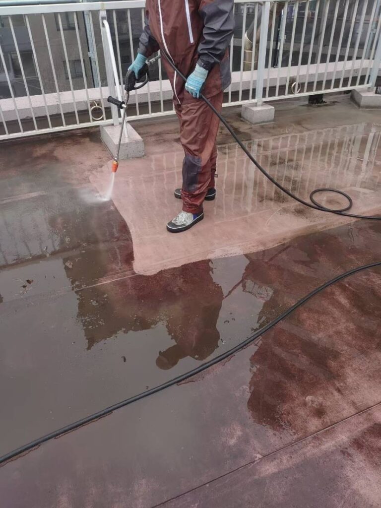 高圧洗浄で汚れやカビを除去し、表面を研磨し塗料の密着性を高めます。次に防水層を保護する塗装作業に入ります。しっかりメンテナンスすることで建物内部に雨水が侵入するのを防ぎ、建物の劣化を遅らせ寿命を延ばすことができます。