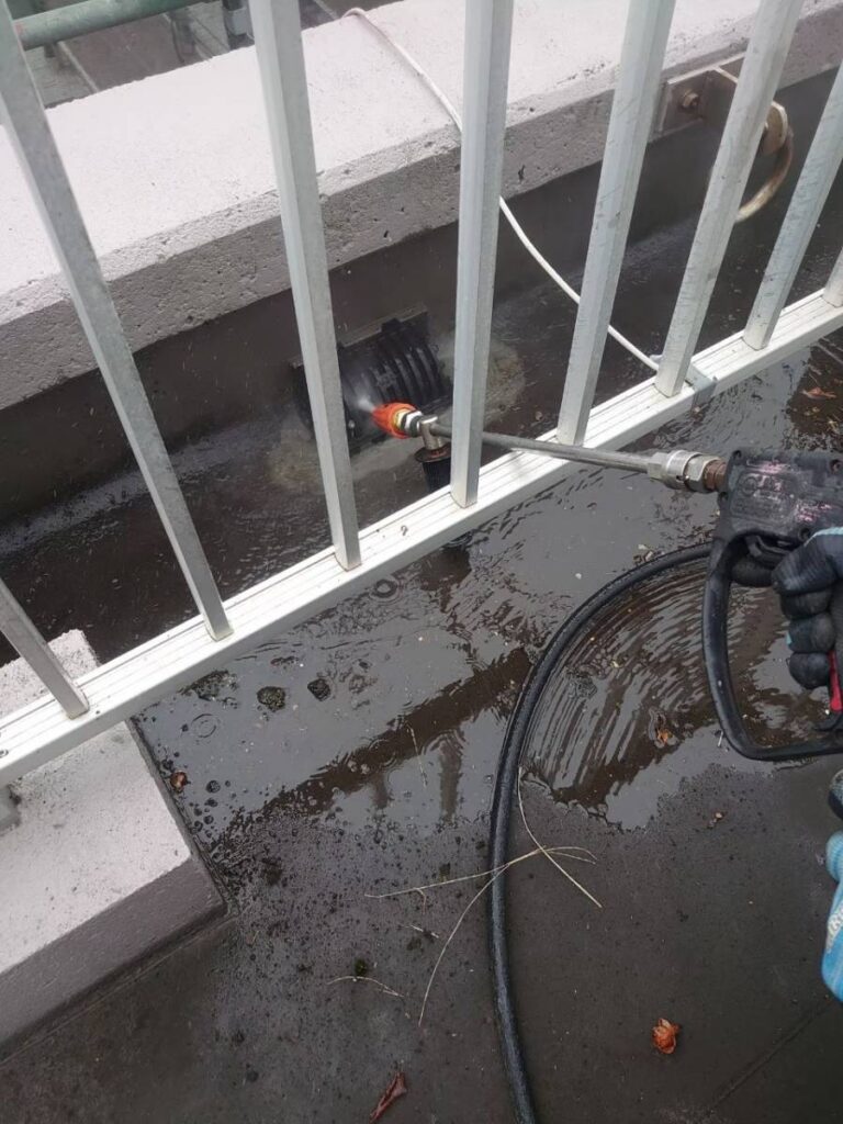 屋上は排水口はゴミや汚れが溜まり屋上全体も長年の埃や汚れが目立つ状態になっていました。