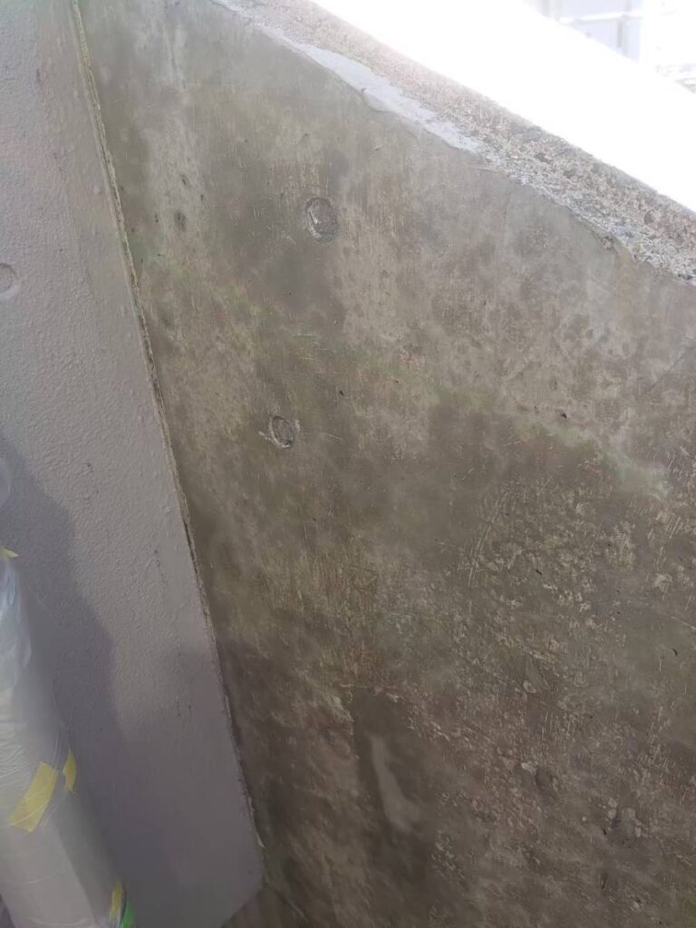 コンクリートの剥がれた部分から鉄筋が見えて錆びている状態でした。しっかりと錆止め効果のある塗料を塗布して、補修材で埋め戻しの作業を行います。