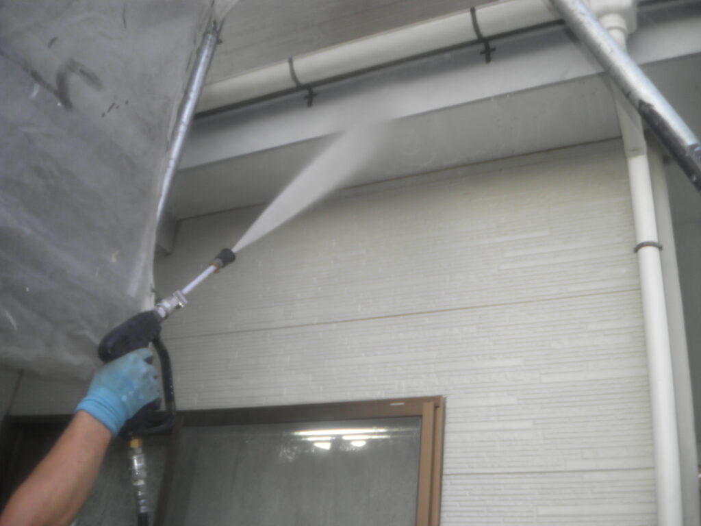 K様邸の塗替え工事において高圧洗浄を実施しました。