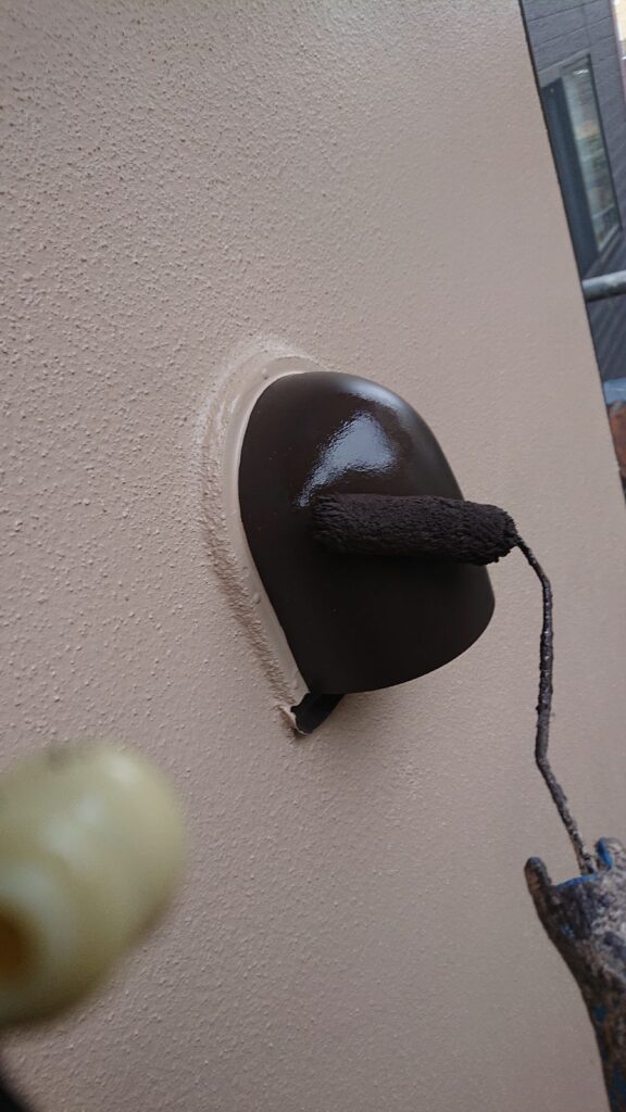換気口カバーと水切り部分も錆び止め効果のある下地で丁寧に塗装を行い、中塗り・上塗りとしっかり三回塗装を重ねます。