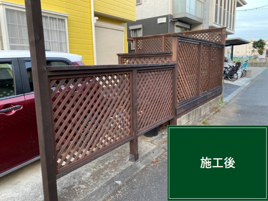 木部のラティスは風雨や日差しで色褪せや傷みが目立ちやすい箇所です。