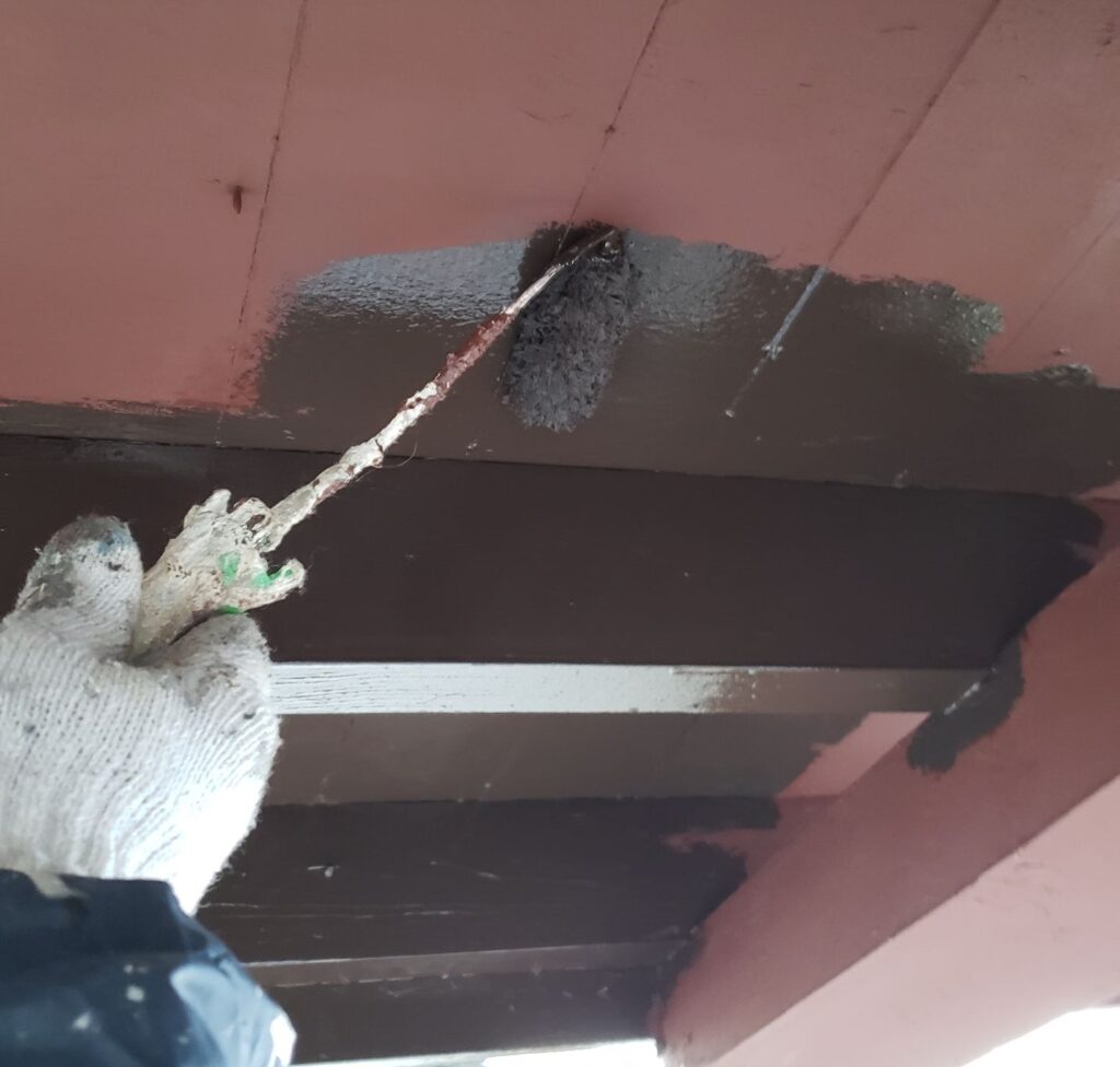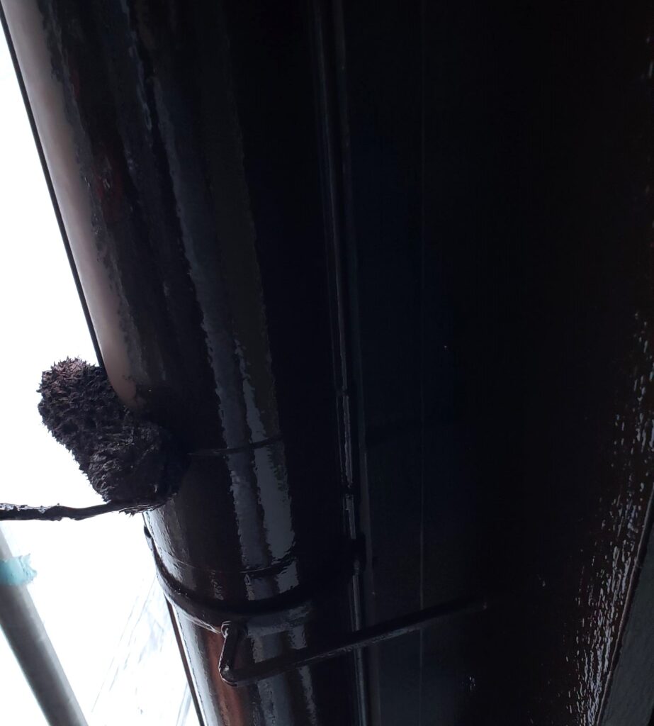 劣化の目立った木部の軒天・破風・雨樋などもしっかり三度塗装を重ねて綺麗にします。