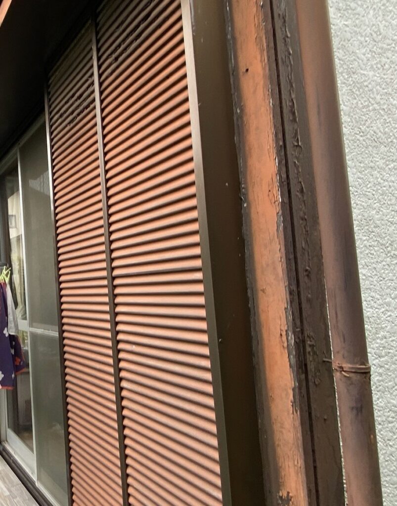 雨や紫外線にさらされてサビやすい鉄部の雨戸のメンテナンスです。