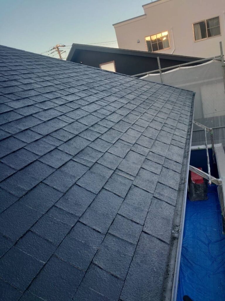 今回のご依頼いただいたご自宅では、外装と合わせて屋根全面塗装を行いました。