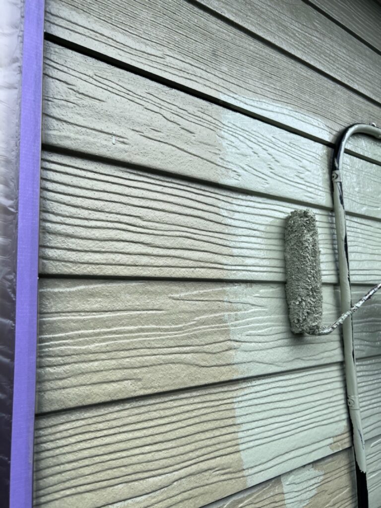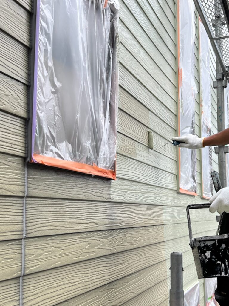 塗膜に十分な厚みを持たせることで、色ムラのない美しい仕上がりと、耐久性の高い外壁に仕上げています。