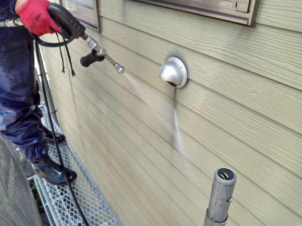 まずは高圧洗浄により汚れをしっかり除去し、下地を整えたうえで塗装を行っていきます。