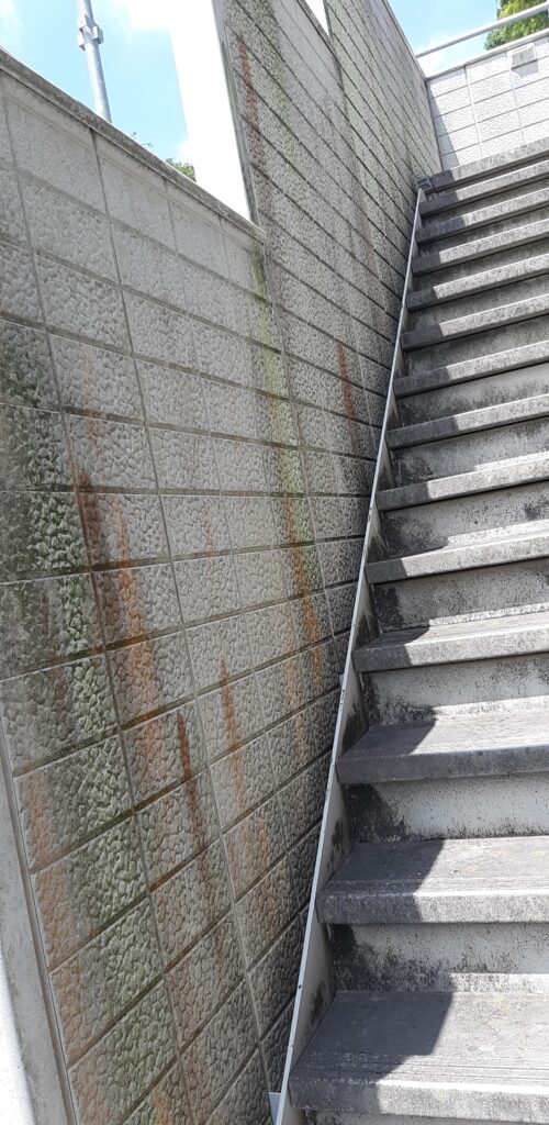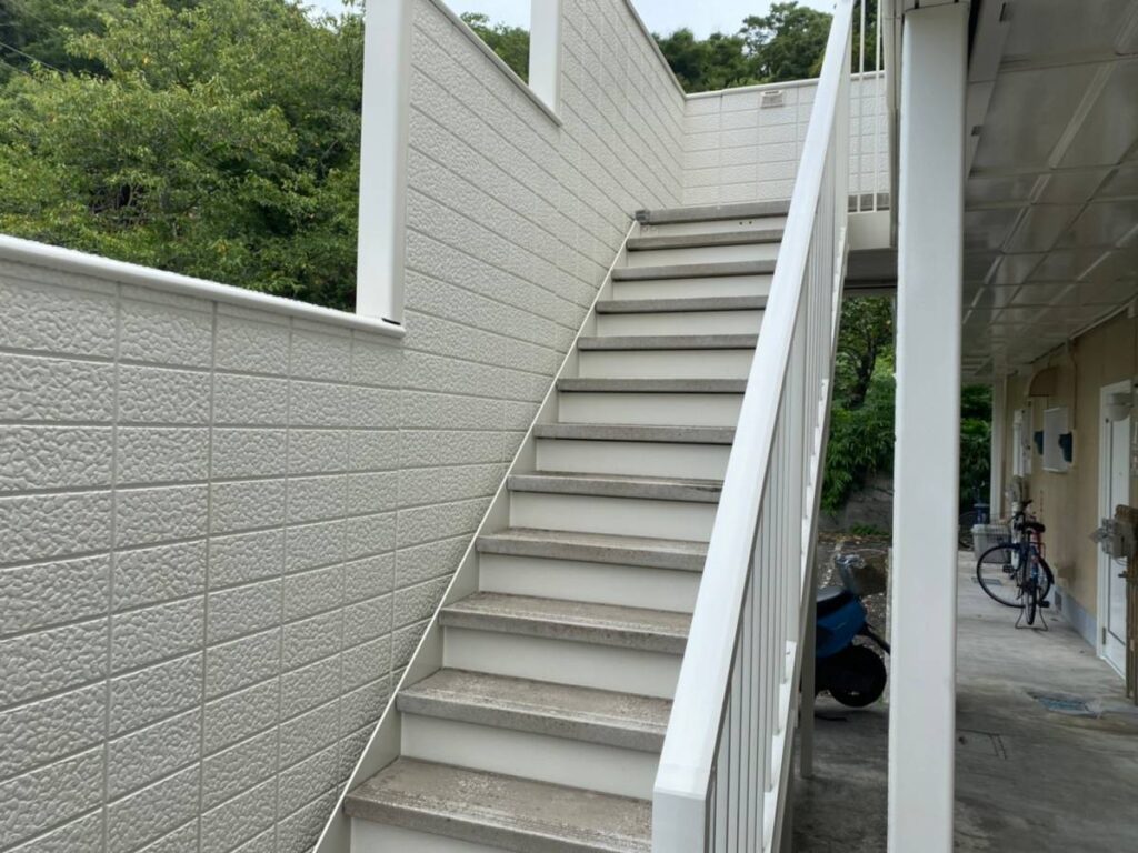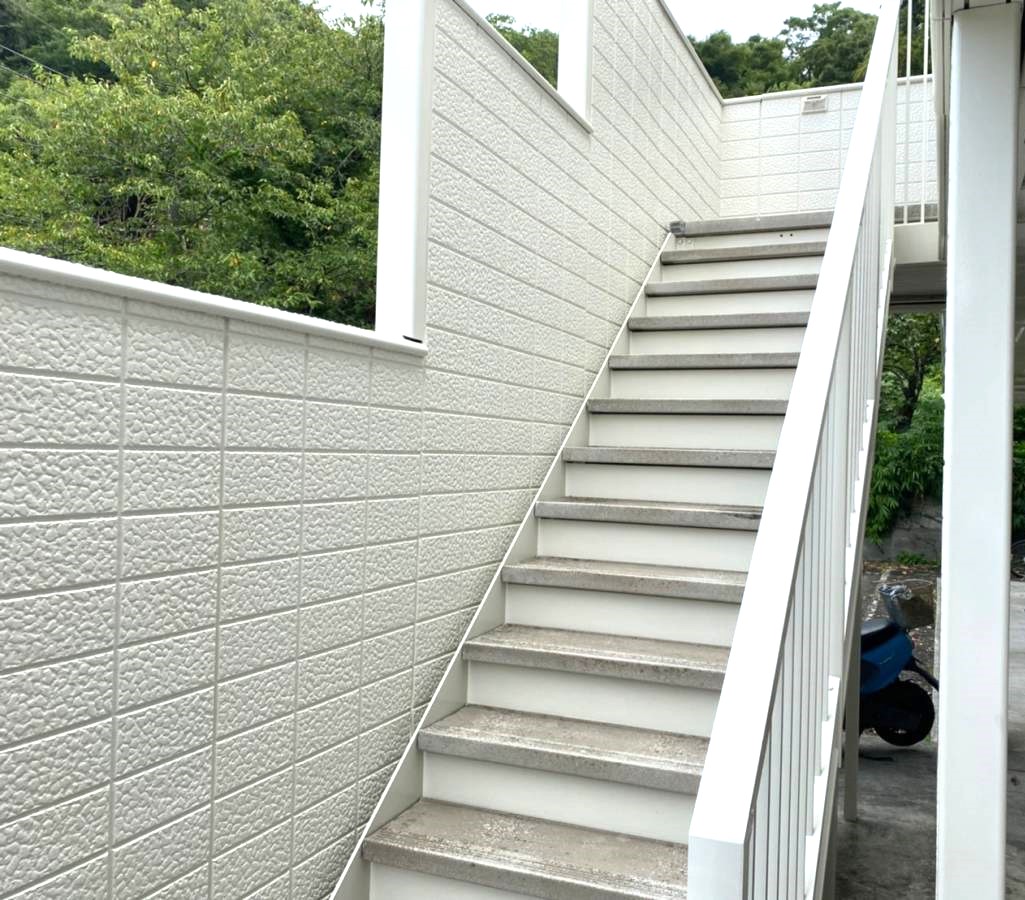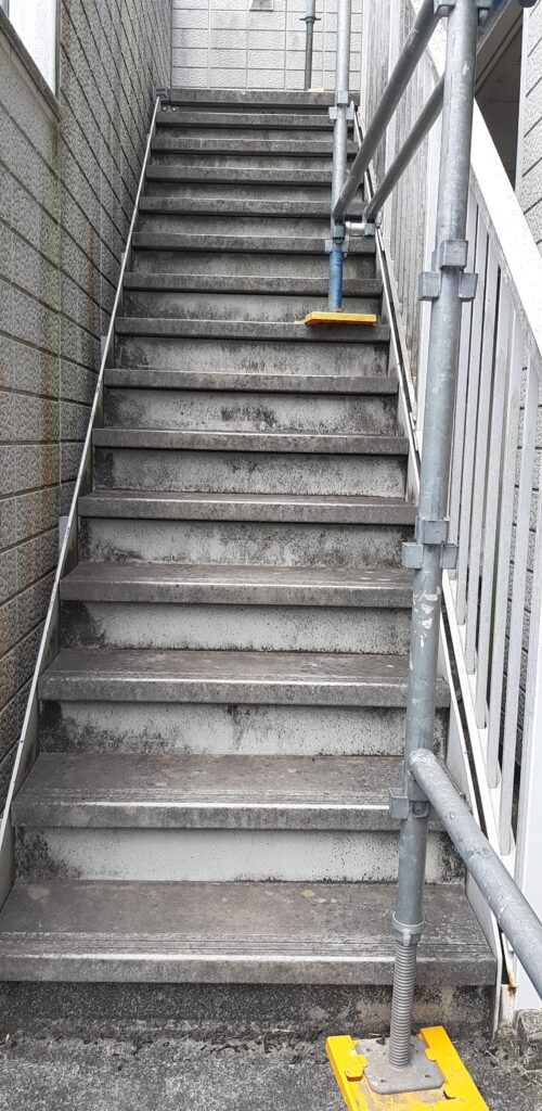 今回ご紹介するのは、アパート共用階段およびその横の外壁部分の工事です。