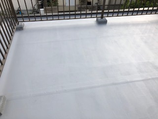 防水層の表面が黒ずみやコケで汚れ、砂ぼこりがつき、ざらついた状態から美しいツヤのある床面に仕上がり、快適に過ごせるベランダになりました。