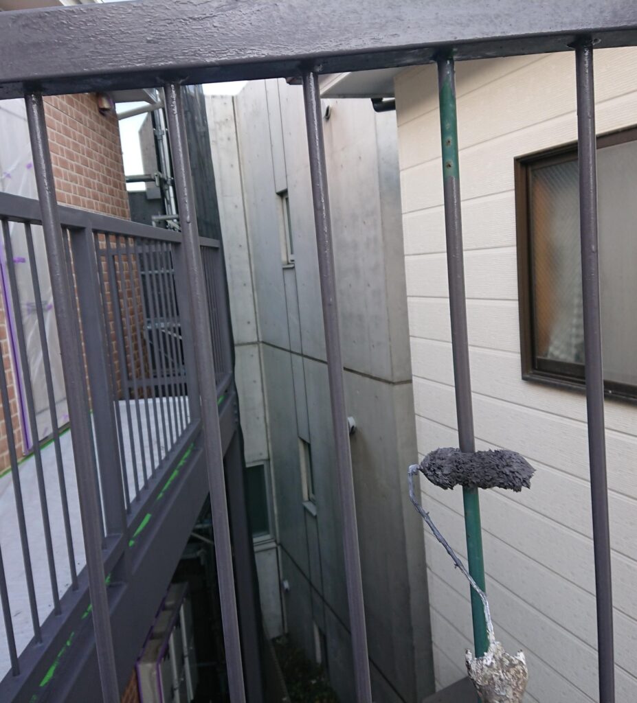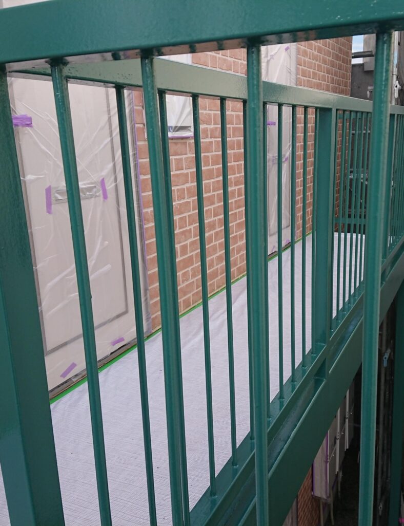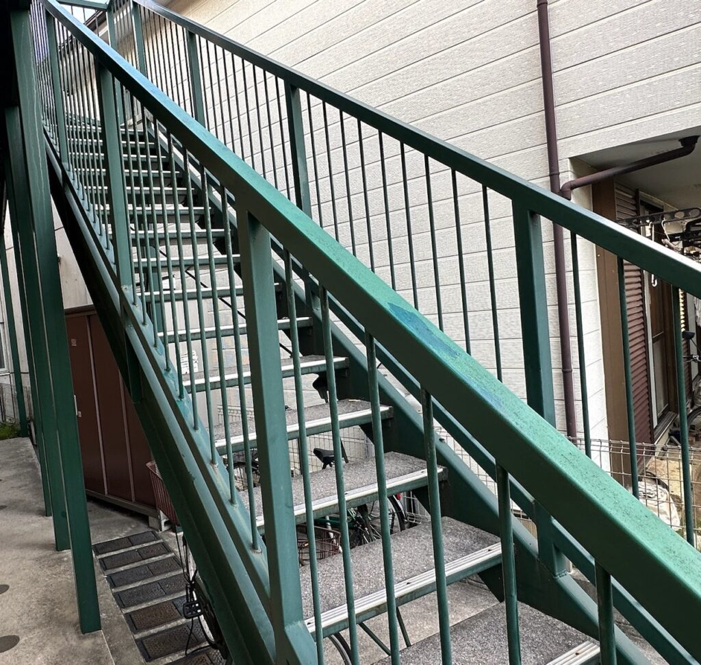 アパート全体の塗替えの一環として、今回は階段と二階の柵(手すり)部分の塗装をご紹介します。
