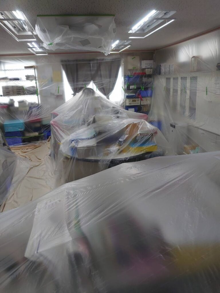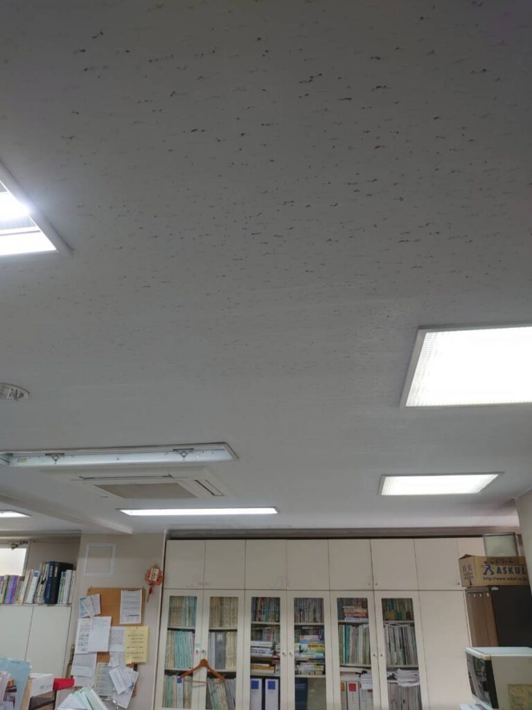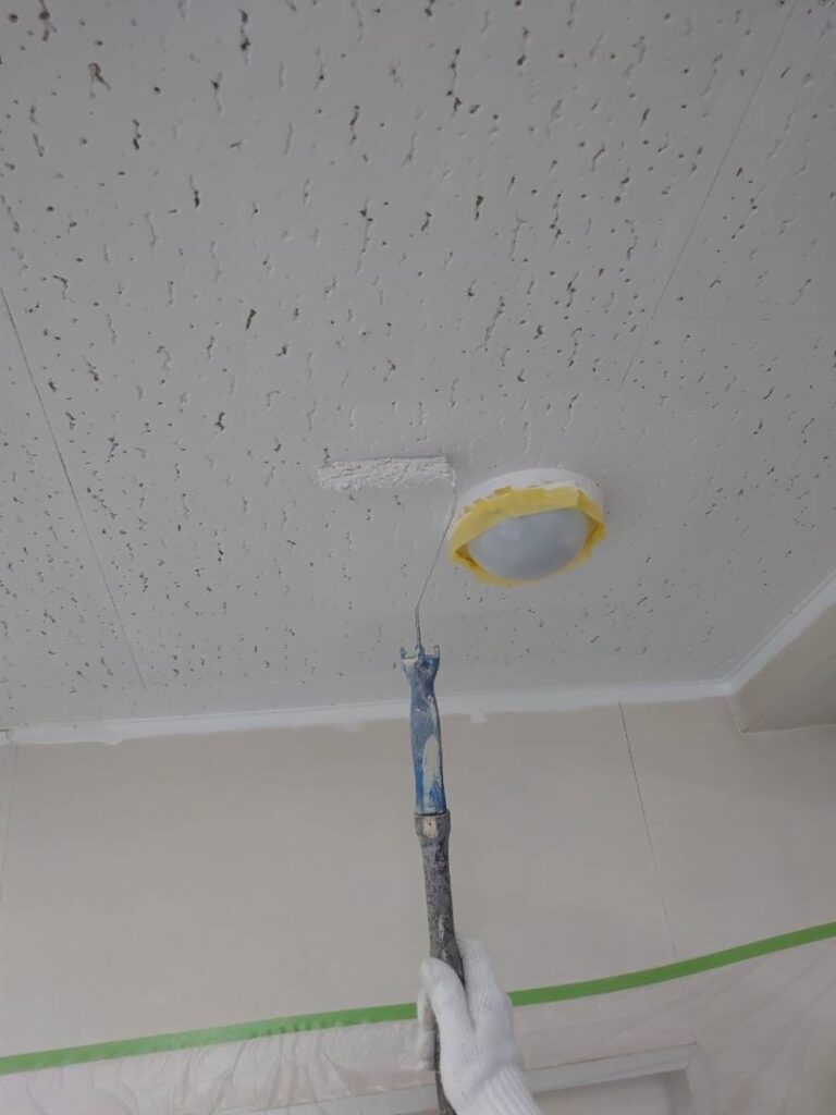 施工事例2026.03.18室内の天井もメンテナンスで一新!以前、屋根・外壁のメンテナンスをご紹介した事務所の室内メンテナンスです。メンテナンス前の様子長年の汚れでくすみ室内も暗い印象に。室内を汚さないようにしっかりと養生します。丁寧に塗装していきます。細かなところも丁寧に。塗装を重ねてムラのない艶やかな天井にしていきます。天井がすっかり明るくなり、部屋全体の印象もガラッと変わりました。屋根や外壁塗装と一緒に、または室内だけでも気になることがありましたら、お気軽に「ここいろ」までご相談ください。