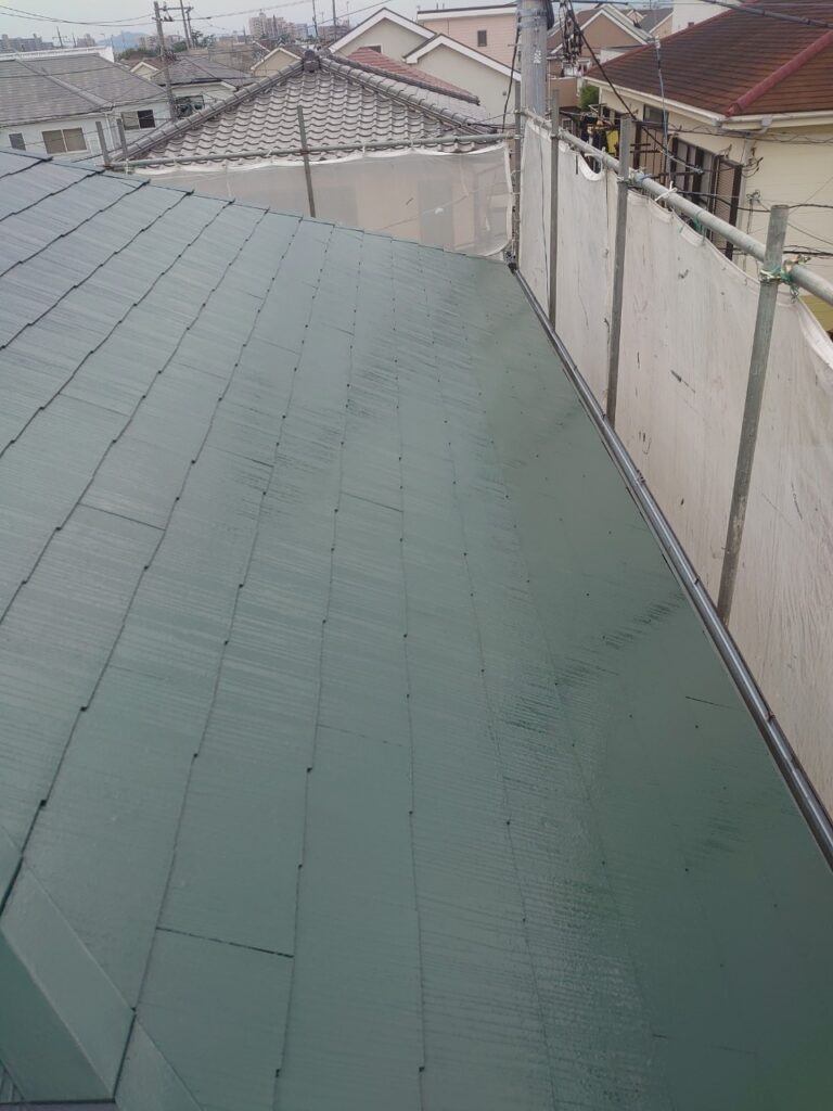 下塗り・中塗り・上塗りの三度塗りをした後は色ツヤもよみがえり、防水性の向上とともに屋根全体がキレイに生まれ変わりました。