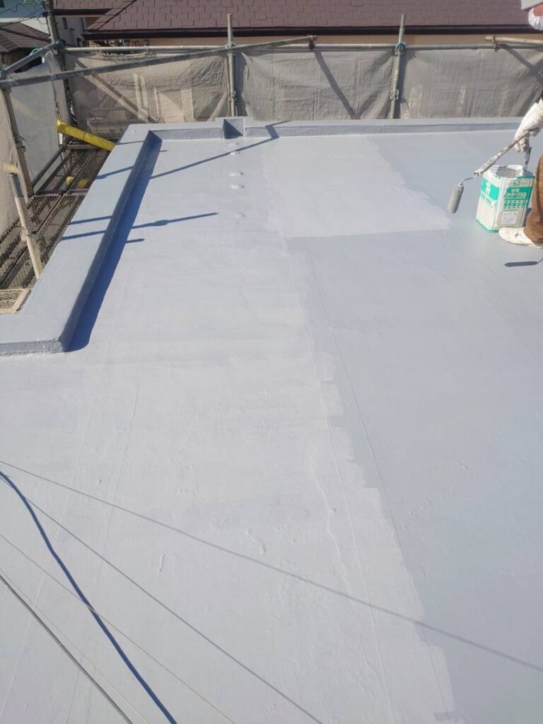 下塗りでは防水材をしっかりと塗布し、屋上全体を保護します。
