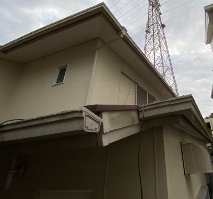 ベランダ塗装、そして見落とされがちな付帯部もしっかり3回塗装で施工しています。目立たない部分こそ丁寧に塗装することで全体の仕上がりが変わってきます。雨戸やベランダの柵の鉄部は錆止め効果のある下地で、軒天は湿気のこもりやすいところなので防カビ効果のある下地を使って塗装をしました。