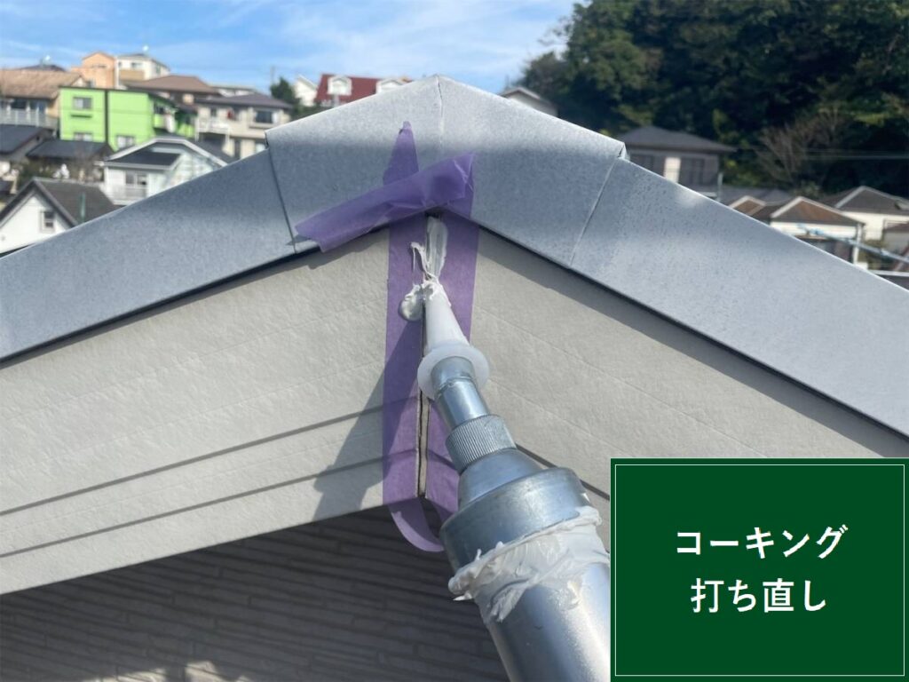 ひび割れや劣化したコーキングを打ち直し、雨水の侵入を防ぎます。