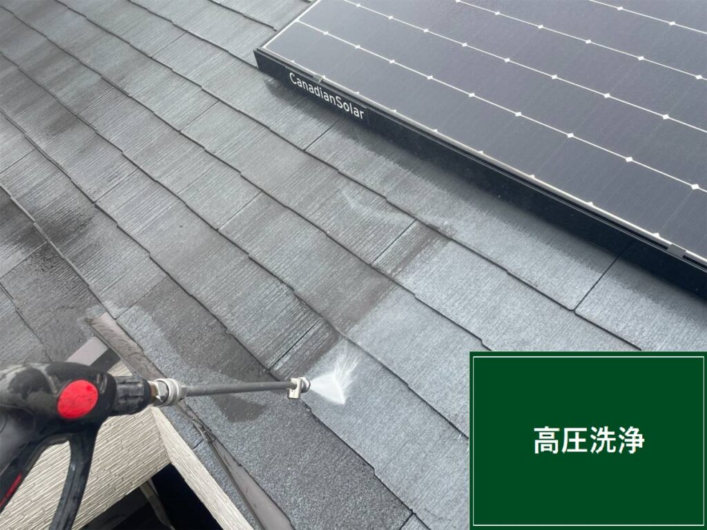 まずは高圧洗浄で外壁の汚れやカビを落とします。