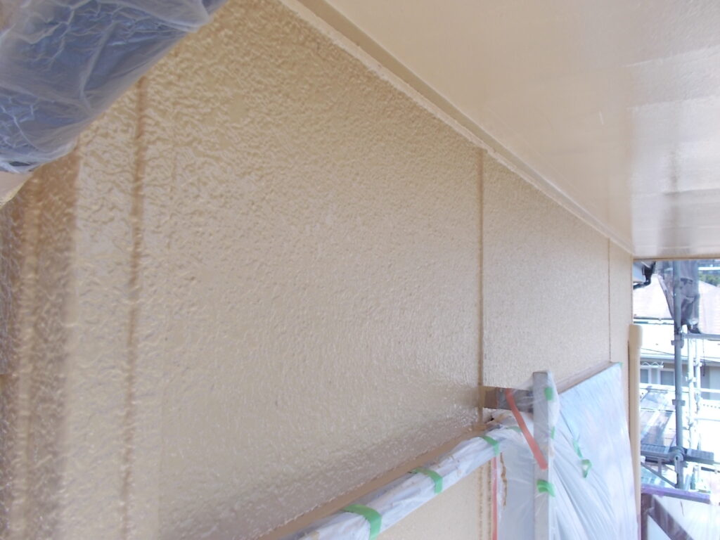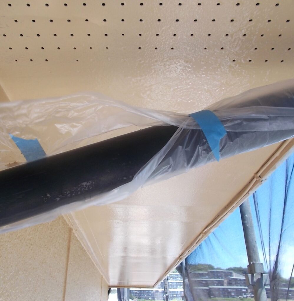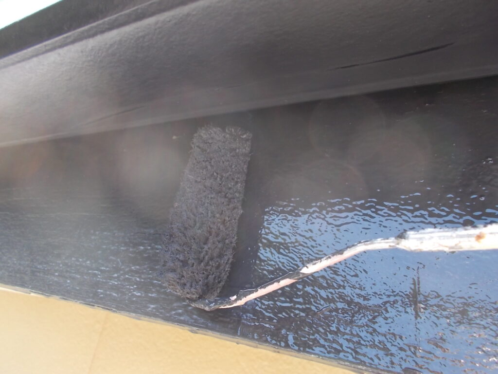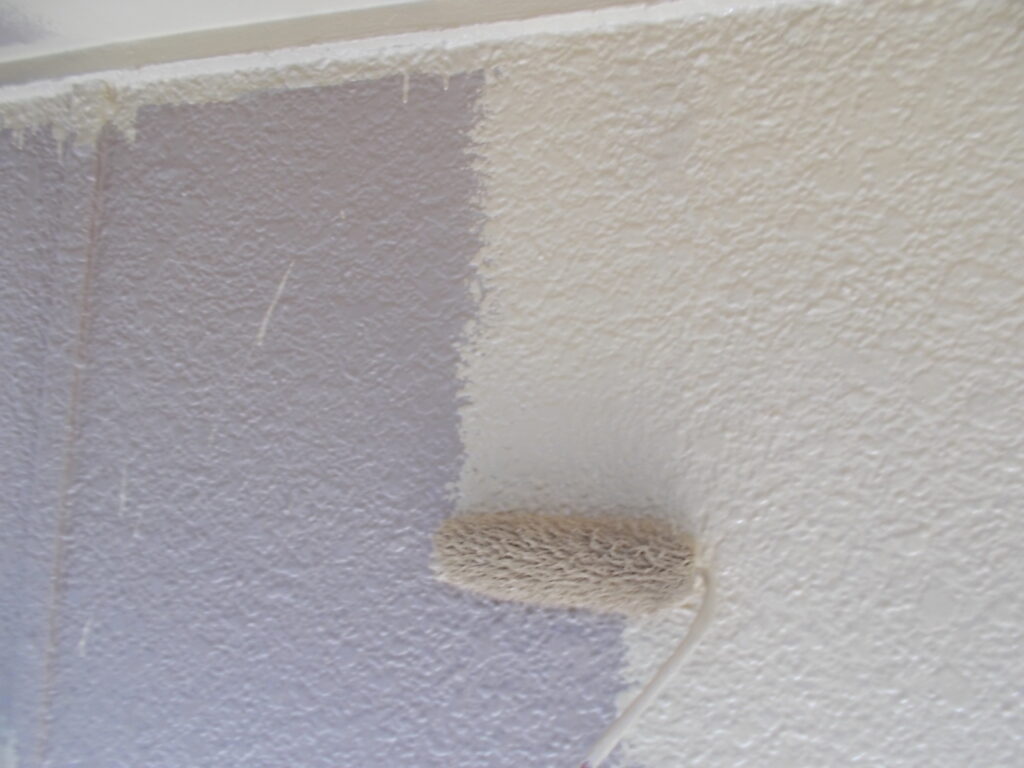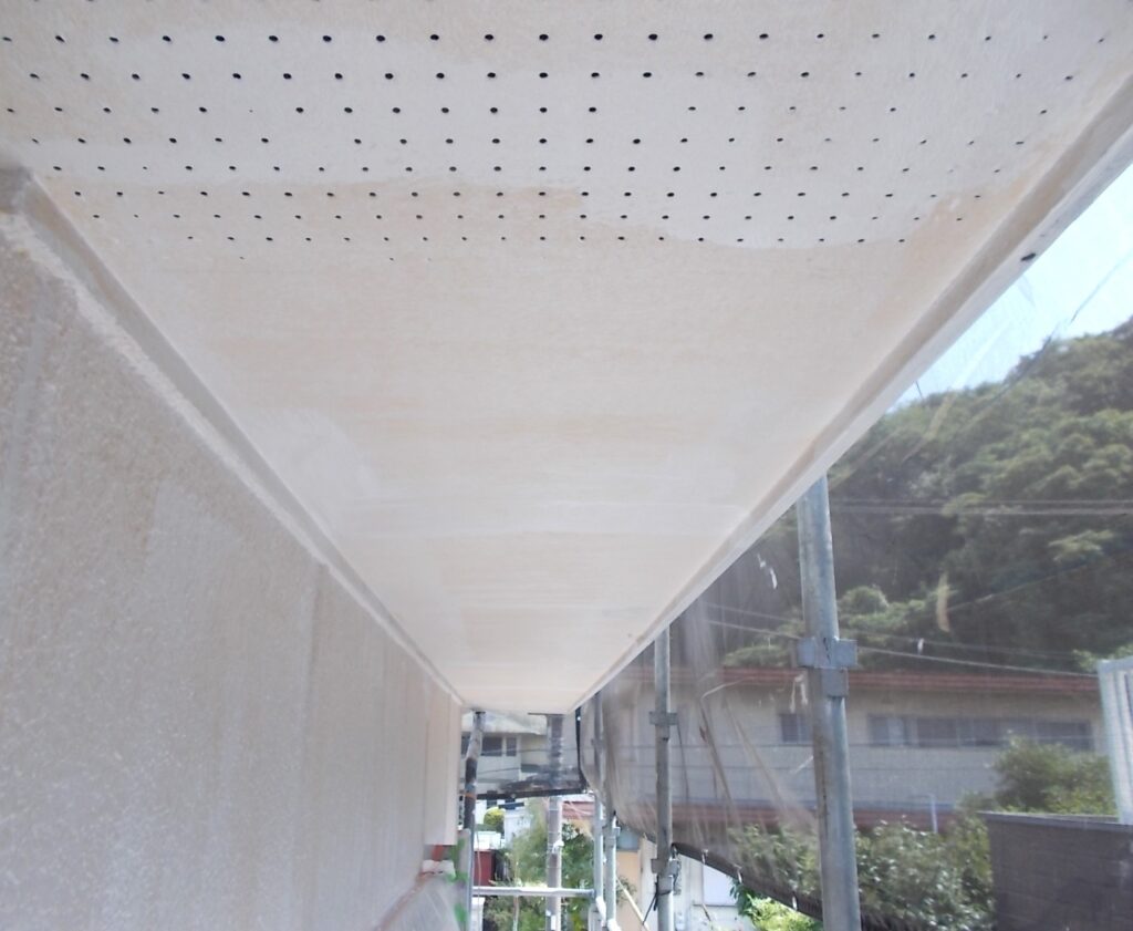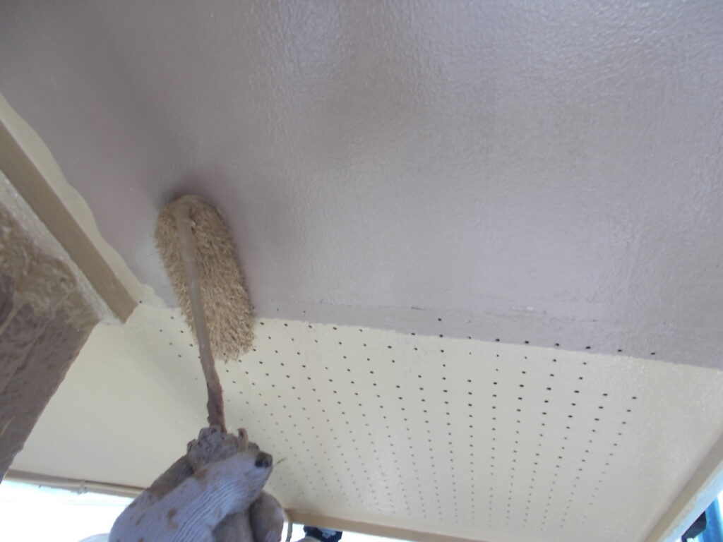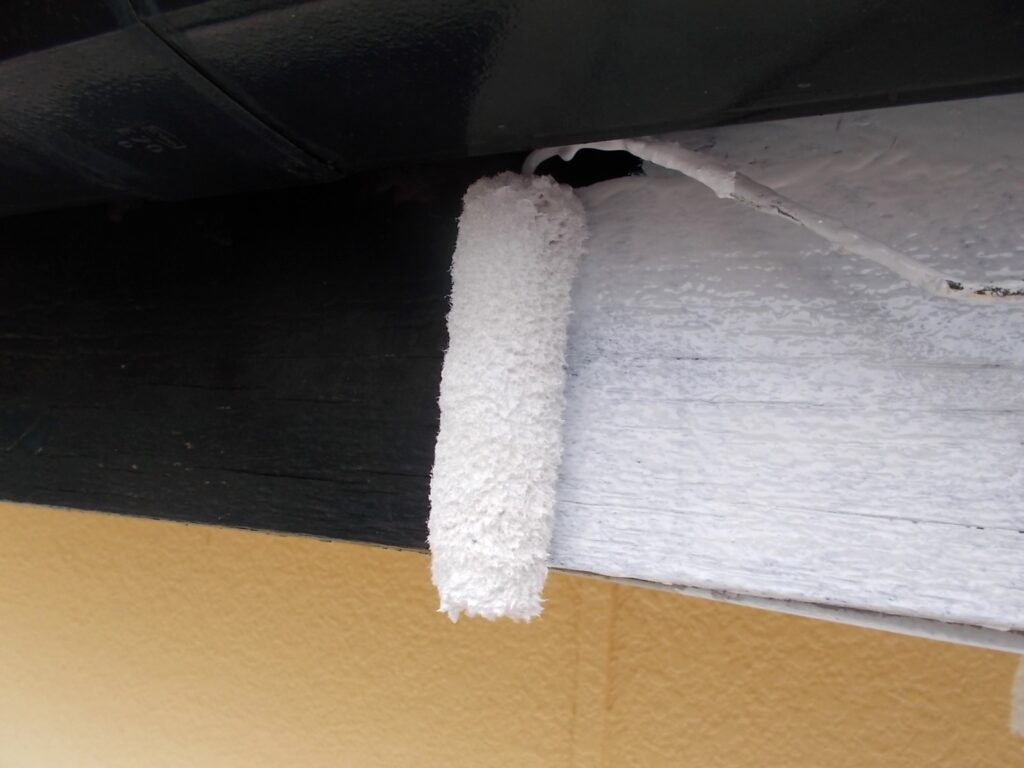 軒天は湿気がこもりやすい場所です。防カビ効果のある塗料で下塗りを行い、二度、三度と塗装を重ねて耐久性をしっかり持たせます。目立たない場所ですが綺麗になることで建物全体が明るい印象に変わります。